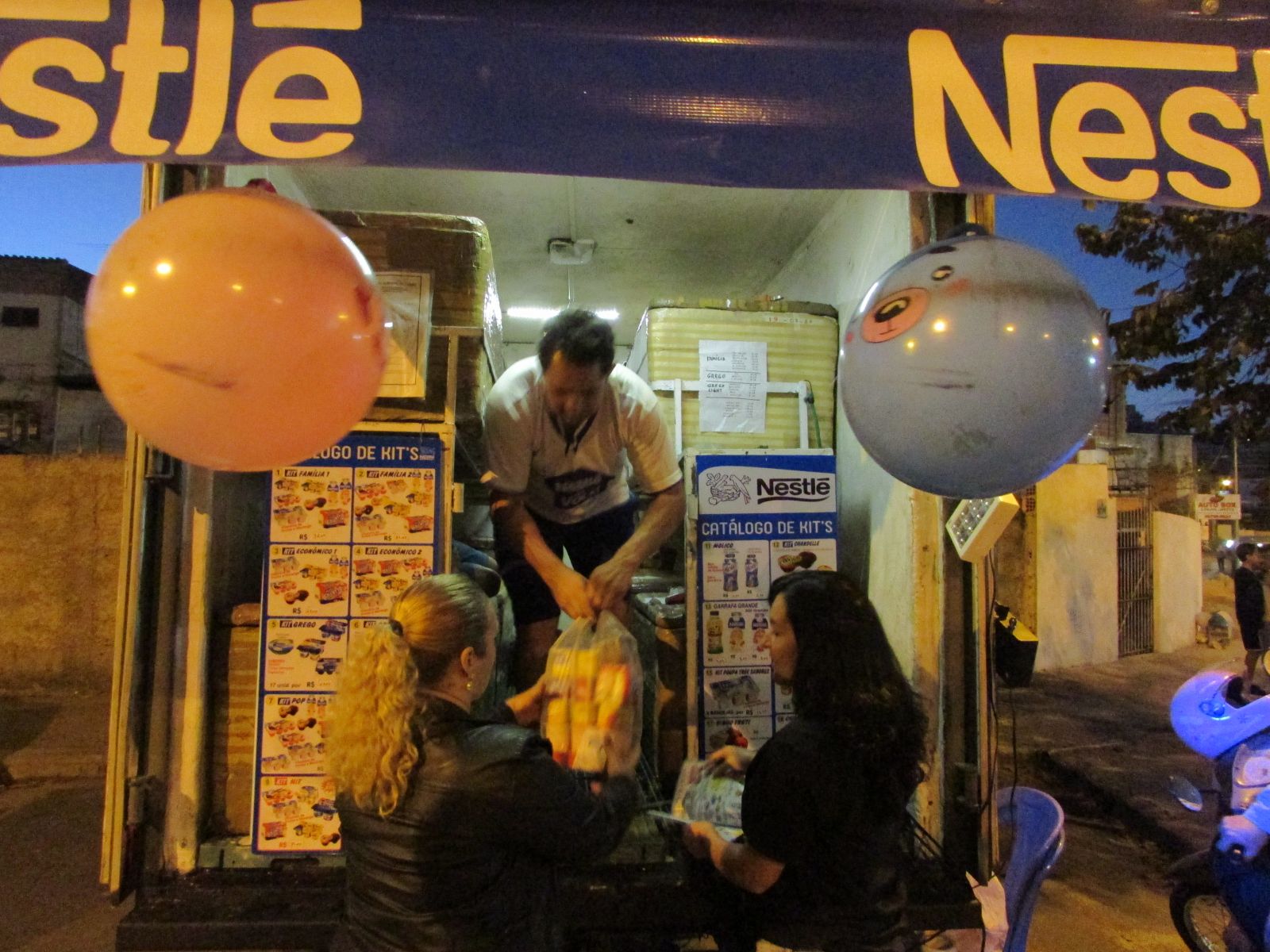 Crianças e adultos passam por lá e levam aos montes os saborosos iogurtes Nestlé.