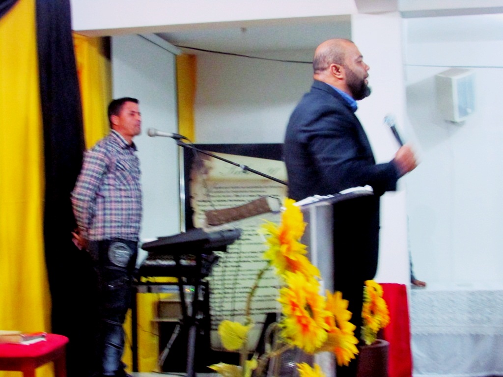 O pastor Eduardo, junto com outros convidados pregaram a Palavra de Deus, logo após da recepção calorosa de músicos que se apresentavam enquanto o povo chegava.