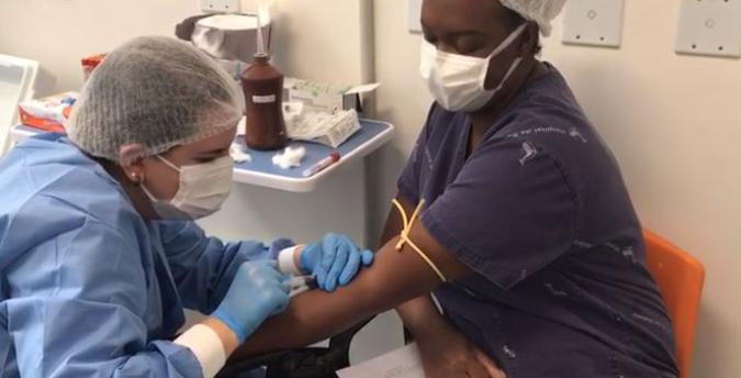 Na etapa inicial, realizada no início de março, 440 profissionais do Hospital da Baleia - única instituição de saúde de Belo Horizonte escolhida pela Fiocruz para participar da pesquisa - se voluntariaram e tiveram o sangue coletado após receberem a primeira dose da vacina.