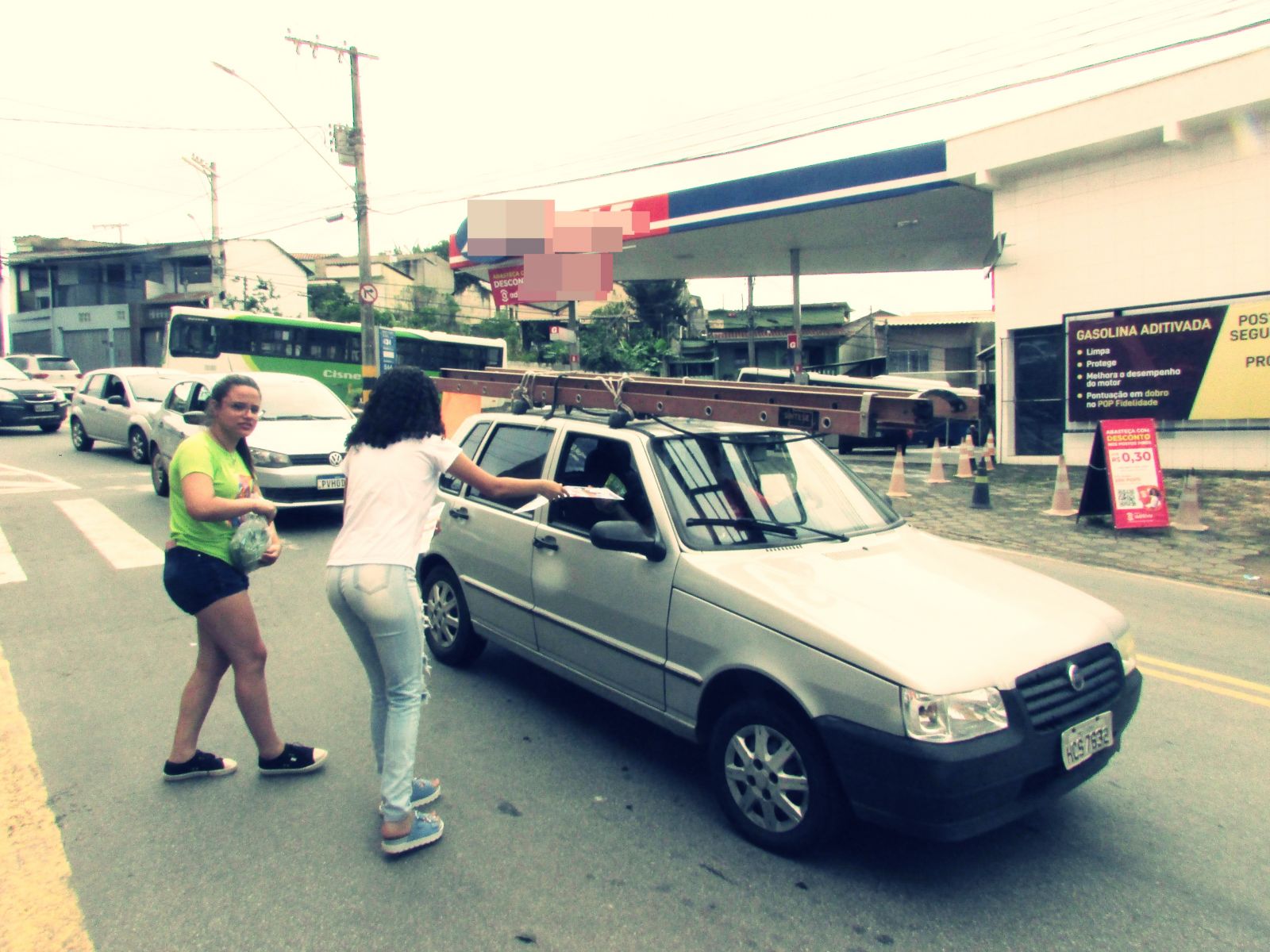 Pedestre e motoristas receberam as folhinhas que fazem parte dos materiais da campanha de paz.