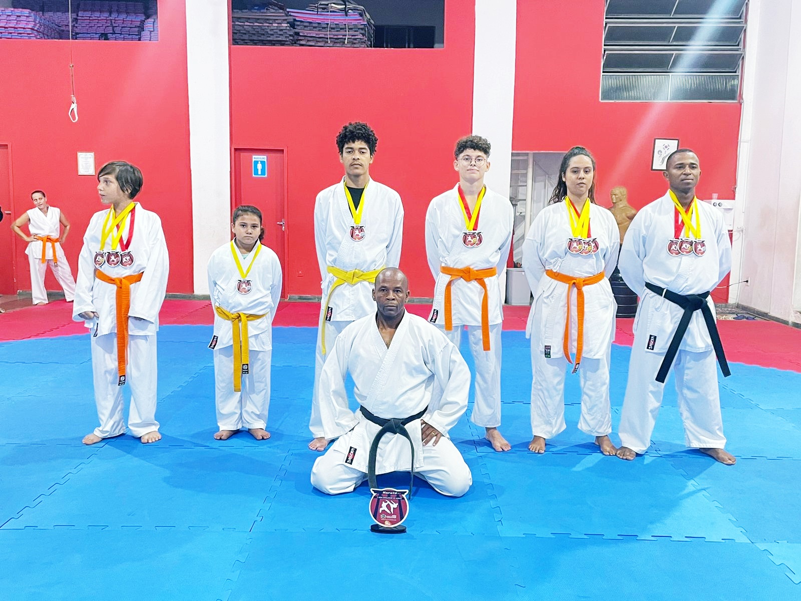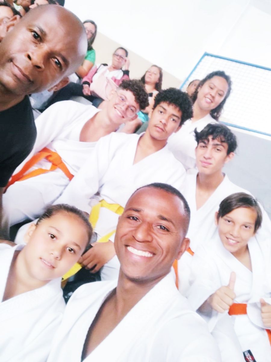 Karatê de Itabira Sensei Braz, sensei Clébio, Ana Clara, João Pedro, Guilherme, Felipe, Matheus e Fernanda